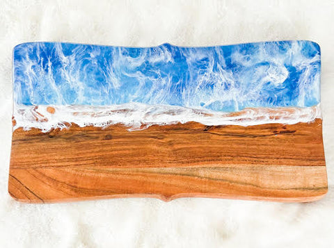 An elevated beach-themed tray handcrafted with food-grade resin. Perfect for entertaining or displaying your favorite items, and easy to clean with a damp cloth. 16.6" x 8.5"