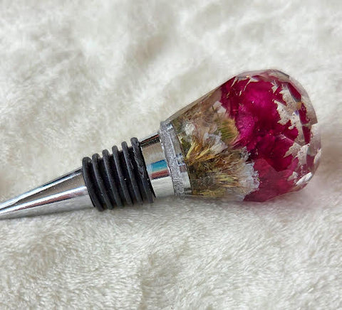 A beautiful wine stopper handcrafted with a real preserved flower set in clear resin. Both functional and elegant, it adds a natural, timeless touch to your favorite bottle and makes a thoughtful gift for any wine lover. Each piece is one of a kind, celebrating the beauty of real florals.